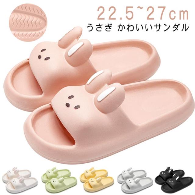 | うさぎ かわいいサンダル 22.5~27cm クッション性のある厚底で疲れにくい。しっかりしたサポートで長時間履いても疲れにくい。 前開きタイプなのでいやなニオイもこもらず、暑い日も足元はいつも快適。 丈夫でお手入れ簡単。EVA素材のソールは耐久性があり、変形しにくいです。汚れも落としやすく、毎日の使い勝手が良いです。 滑り止め付き、濡れた床でも安心♪ | |