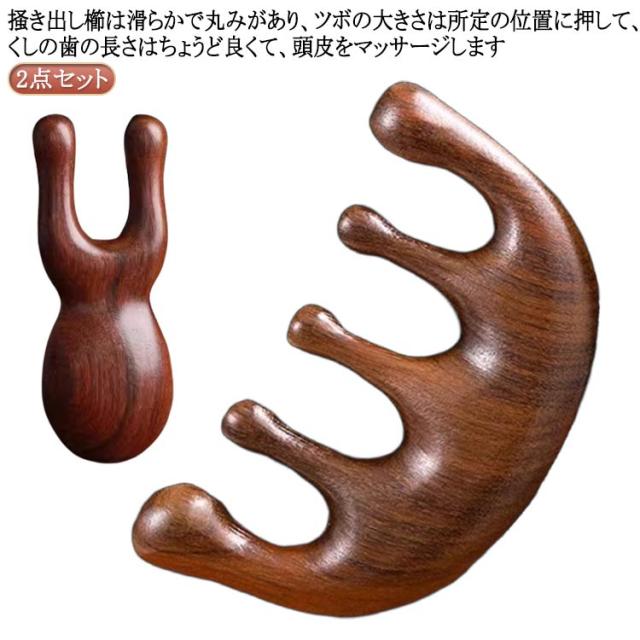 マッサージコーム 木製 サンダルウッド 檀木櫛 頭皮マッサージ 2点セット ヘアケア 頭皮 多機能 天然木 カッサ リンパマッサージ グッズ ツボ押し棒 ヘアブラシコーム 頭皮ツボ押し 経絡 2点セット ヘアブラシ 頭皮 顔 首 鼻 静電気防止