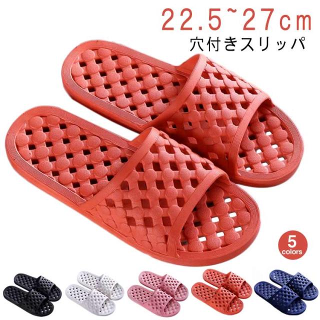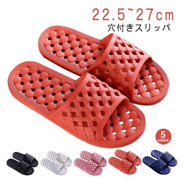 | 穴付きスリッパ 22.5~27cm サンダル全体的に穴あき、雨上がりにお水が溜まることがなく、乾きも速いので、サッと履けます。 さらに丸い凸凹が足裏を優しくソフトに刺激します。 ベランダやお風呂場など様々な用途にご使用いただけます。 | |