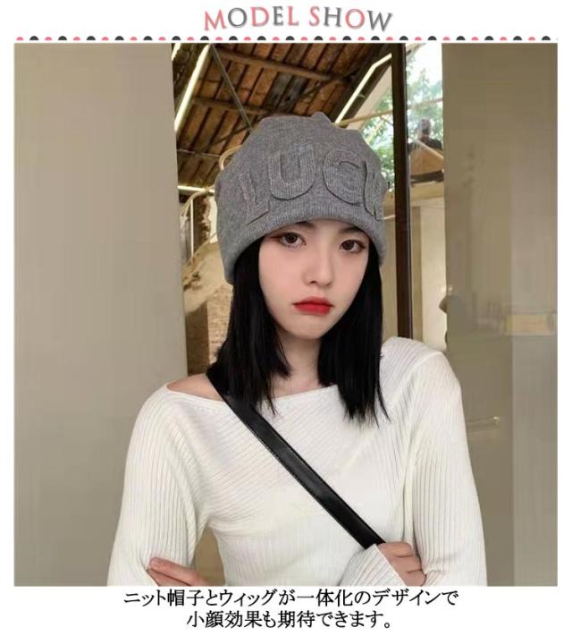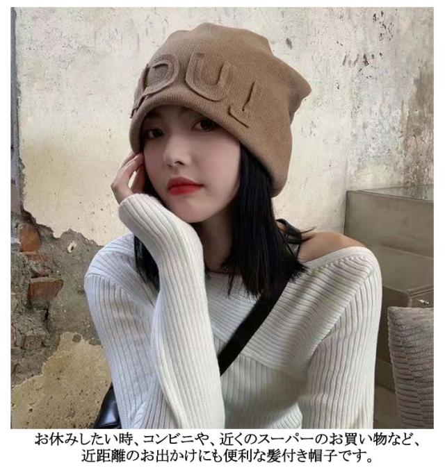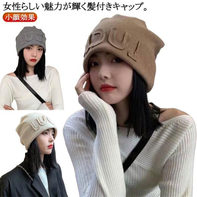 ミディアム ニット帽子 ウィッグ ニット帽 帽子 髪付き帽子 秋 髪付き帽子 自然 毛付き帽子 かつら付き帽子 ウィッグ付き帽子 ヘア ストレート ニットキャップ 冬 ウィッグ帽子一体型 医療用帽子 小顔効果 簡単 自然 おしゃれ 帽子ウィッグ