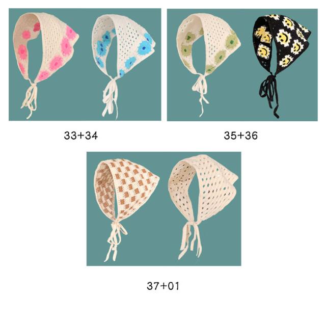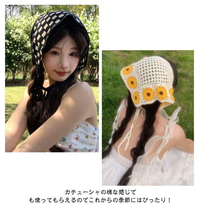 | 【2枚セット】【小顔効果】【全40色】 さっとかぶれて簡単楽々三角巾タイプのバンダナ。 透かし編みにしたデザインがとても繊細でお洒落です。 カチューシャの様な感じでも使ってもらえるのでこれからの季節にはぴったり! フランスのレトロな美しさを醸し出し、夏の服装に優雅さを加えるのに最適です。 コンパクトになりますので持ち運びにも便利。 | |