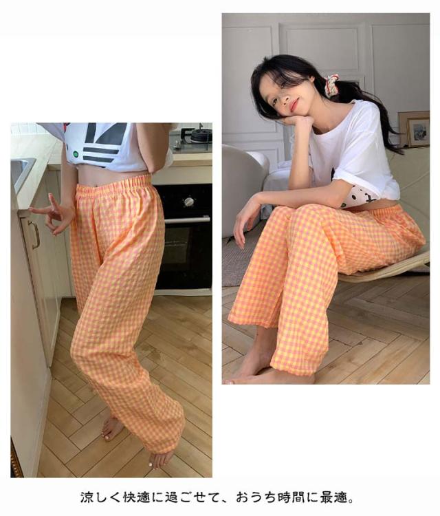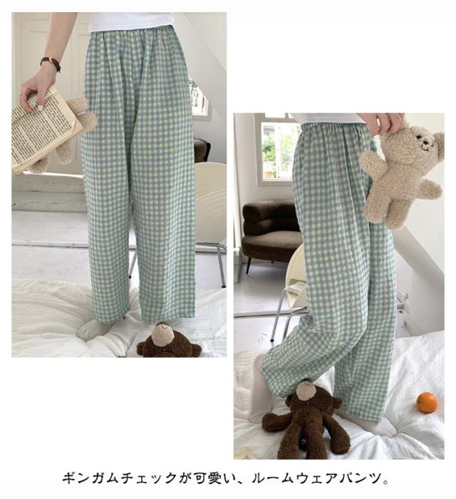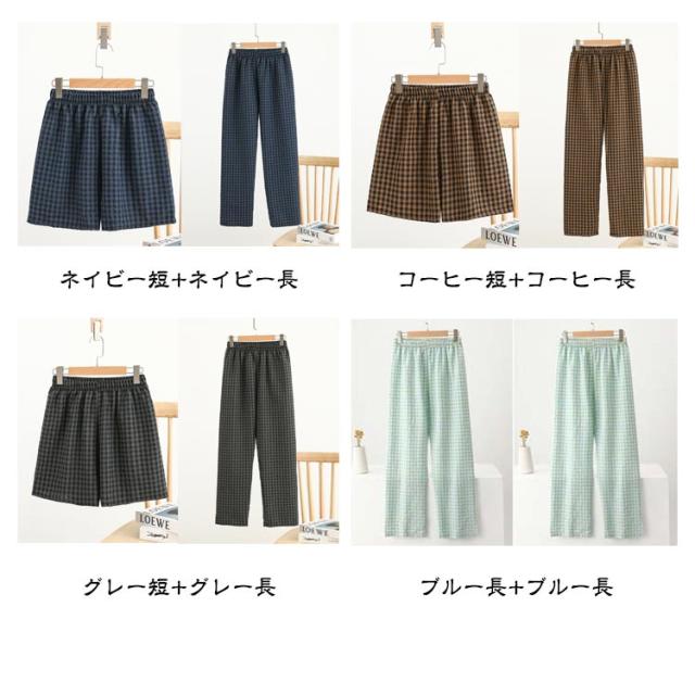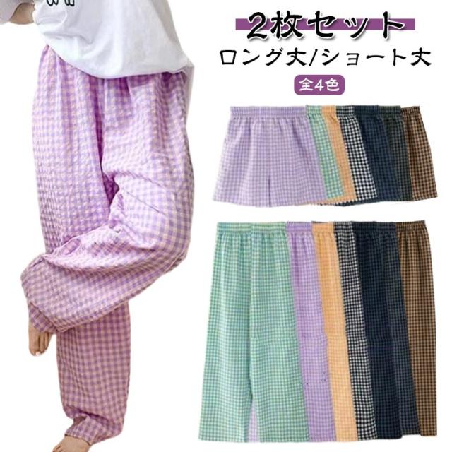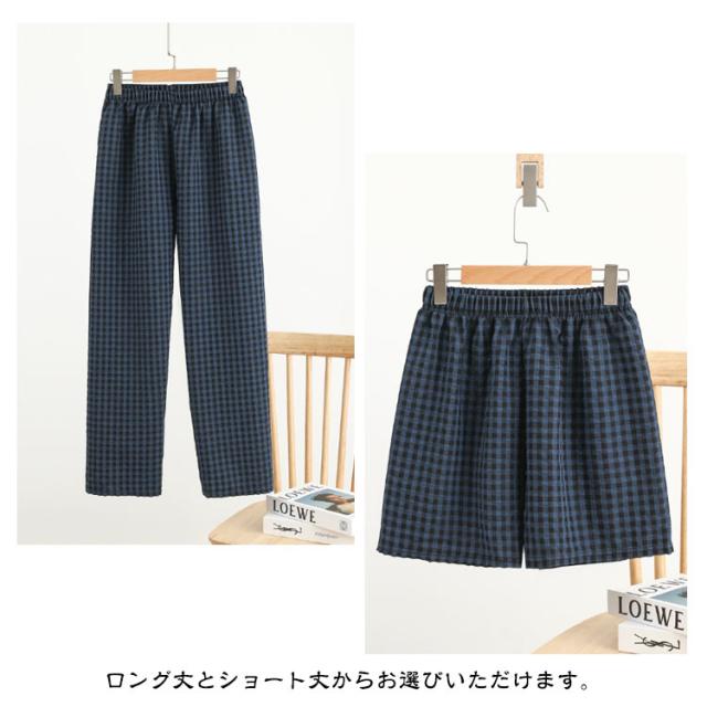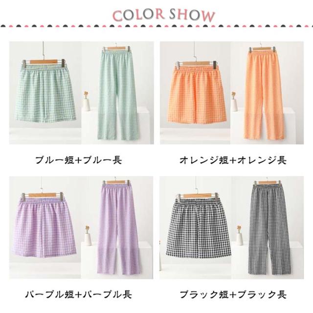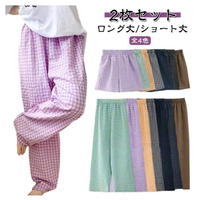 2枚セット ルームパンツ パンツ ギンガムチェック 2枚セット ルームウェア イージーパンツ レディース ショートパンツ ロングパンツ 涼しい 薄手 部屋着 パジャマ ズボン リラックスパンツ 夏 コットン ナイトウェア 短パン