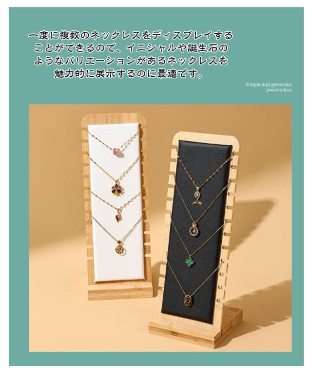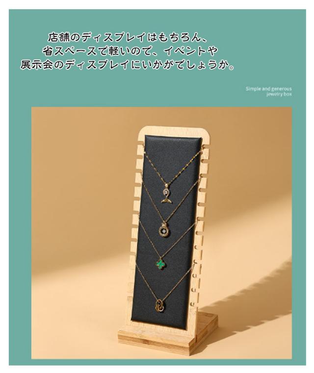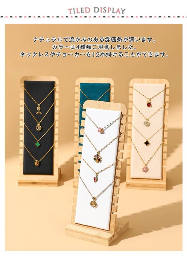 | 【12本掛ける】【ネックレススタンド】【木製】 ナチュラルで温かみのある雰囲気が漂います。カラーは4種類ご用意しました。ネックレスやチョーカーを12本掛けることができます。 一度に複数のネックレスをディスプレイすることができるので、イニシャルや誕生石のようなバリエーションがあるネックレスを魅力的に展示するのに最適です。 店舗のディスプレイはもちろん、省スペースで軽いので、イベントや展示会のディスプレイにいかがでしょうか。 アクセサリーのハンドメイド作家さんの商品撮影用として人気です。お家でもインテリアとして飾るとお店のような演出ができて素敵です。 | |