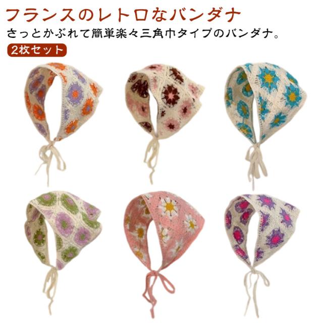 | 【2枚セット】【フランスのレトロなバンダナ】 さっとかぶれて簡単楽々三角巾タイプのバンダナ。 透かし編みにしたデザインがとても繊細でお洒落です。 カチューシャの様な感じでも使ってもらえるのでこれからの季節にはぴったり! フランスのレトロな美しさを醸し出し、夏の服装に優雅さを加えるのに最適です。 コンパクトになりますので持ち運びにも便利。 | |