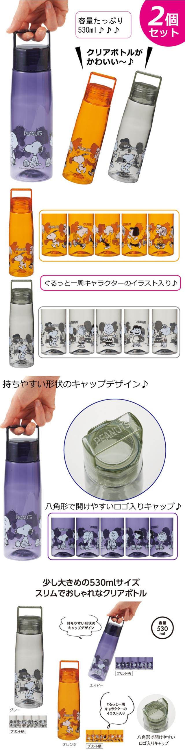 スヌーピー 水筒 530ml 2個セット ボトル SNOOPY クリアボトル マイボトル ウォーターボトル 軽量 軽い 洗いやすい 可愛い 子供 プレゼント お返し 母の日 ドリンクボトル ボトル 直飲み スリム PEANUT プチギフト お返し ポイント消化