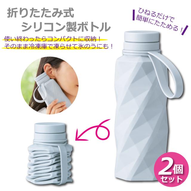 折りたたみボトル シリコン 水筒 2個セット 550ml ウォーターボトル 軽量 割れない 冷凍 マイボトル コンパクト たためる シリコン キッチン用品 氷のう シリコン キッチン用品 日用品 アウトドア レジャー エコ ドリンクボトル 柔らかい ブルー イエロー
