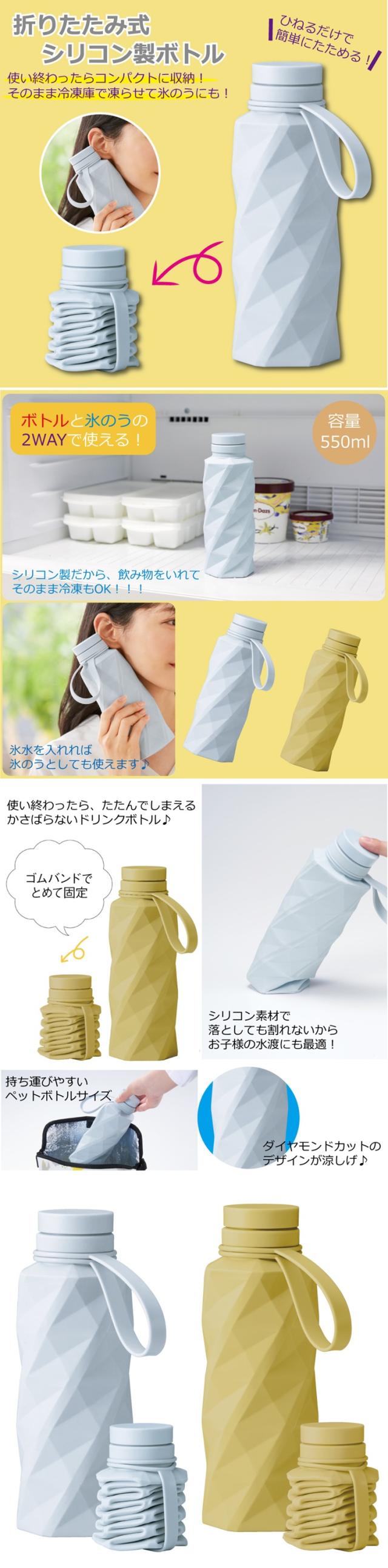 折りたたみボトル シリコン 水筒 550ml ウォーターボトル 軽量 割れない 冷凍 マイボトル コンパクト たためる シリコン キッチン用品 氷のう 熱中症対策 エコ イエロー ブルー