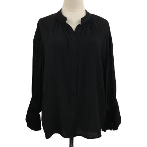 【中古】カプリシューレマージュ ブラウス シャツ スリットネック 楊柳 ギャザー キャンディースリーブ 長袖 F 黒