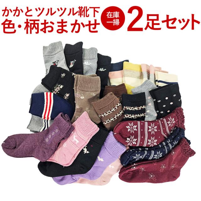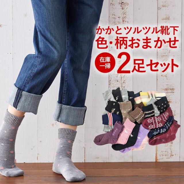 (柄物お任せ2足セット)太陽ニット かかとツルツル靴下 毛混 かかとクリームいらず あったか×安心×楽チンのかかとケア かかと角質除去 23-25cm 日本製 ★701-760-2p 太陽ニット