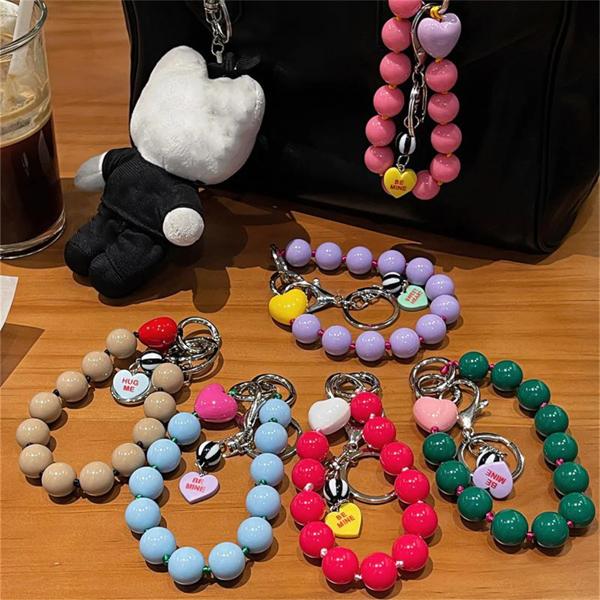 電話用の短いスタイルのリストストラップ、手作りのビーズブレスレット、広いペンダント、紛失防止ストラップ、かわいい愛の心