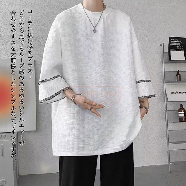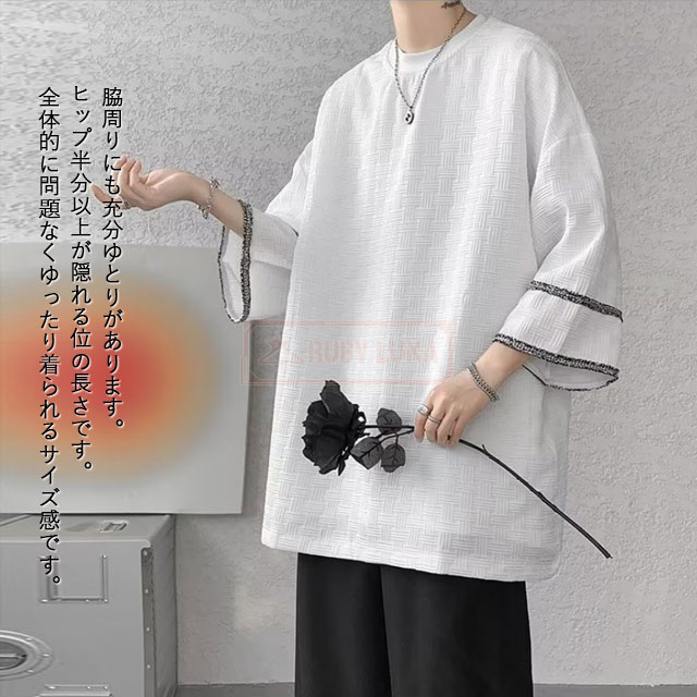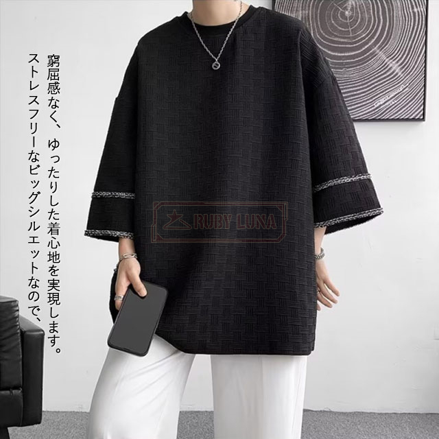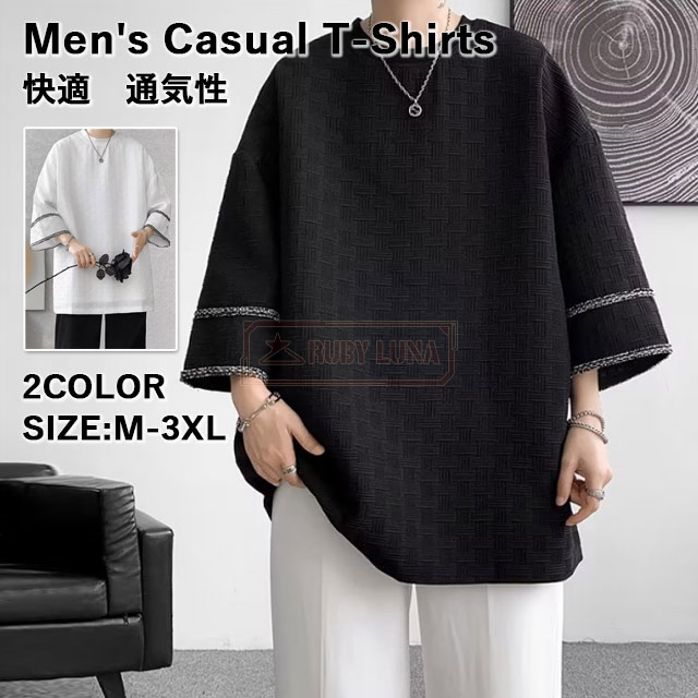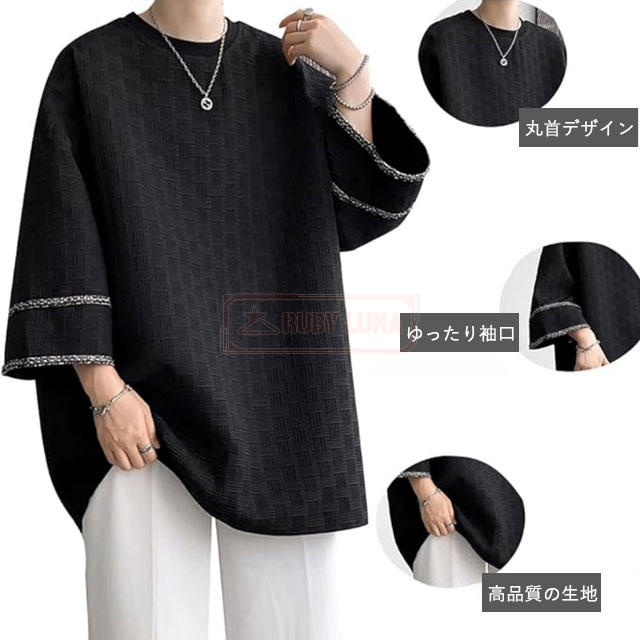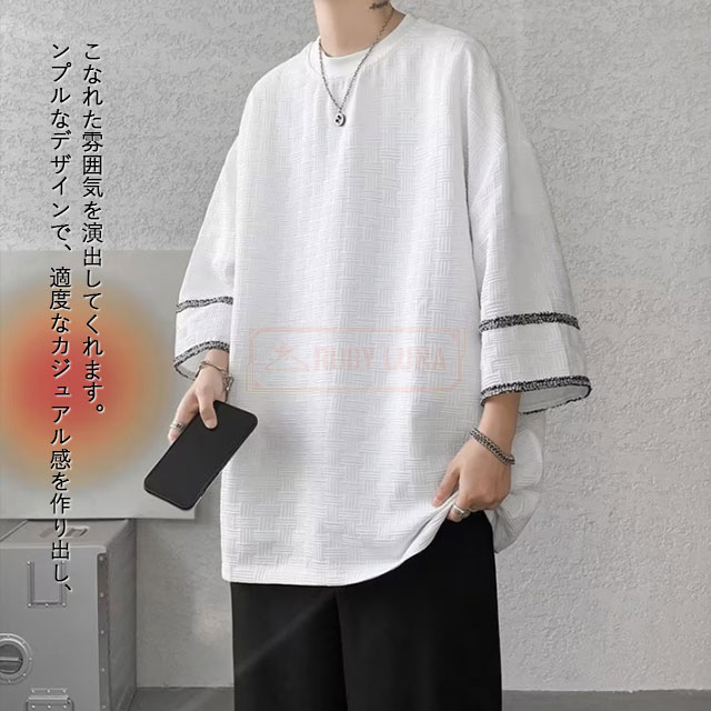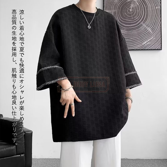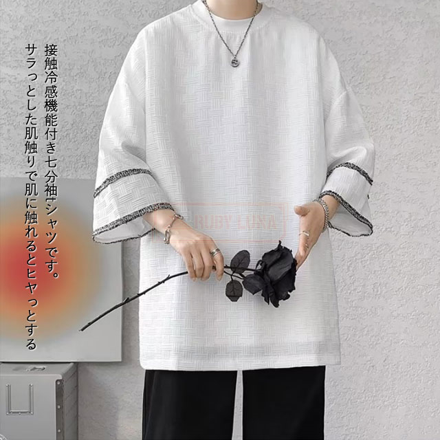 最安挑戦 冬新作 送料無料 新作 Tシャツ メンズ トップス 七分袖 丸首 tシャツ オーバーサイズ アイスシルク 接触冷感 夏 涼しい 涼感 シンプル カットソー ビッグシルエット ティーシャツ ゆったり 七分丈 7分袖 7分丈 薄手 無地Tシャツ