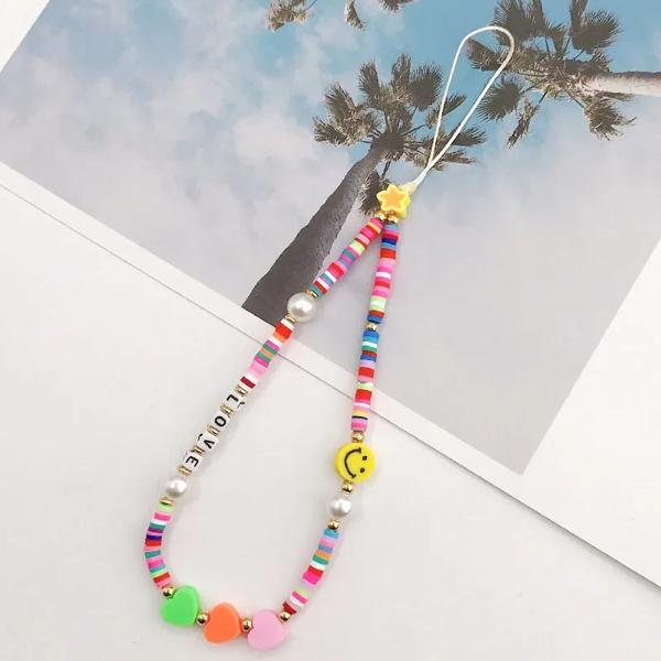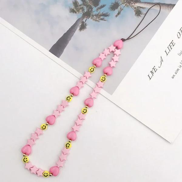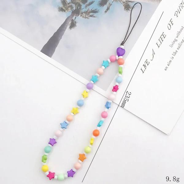 女性と女の子のためのビーズの携帯電話チェーン 電話ストラップ 吊り下げチェーン アクリル パール 漫画のジュエリー 紛失防止チャーム