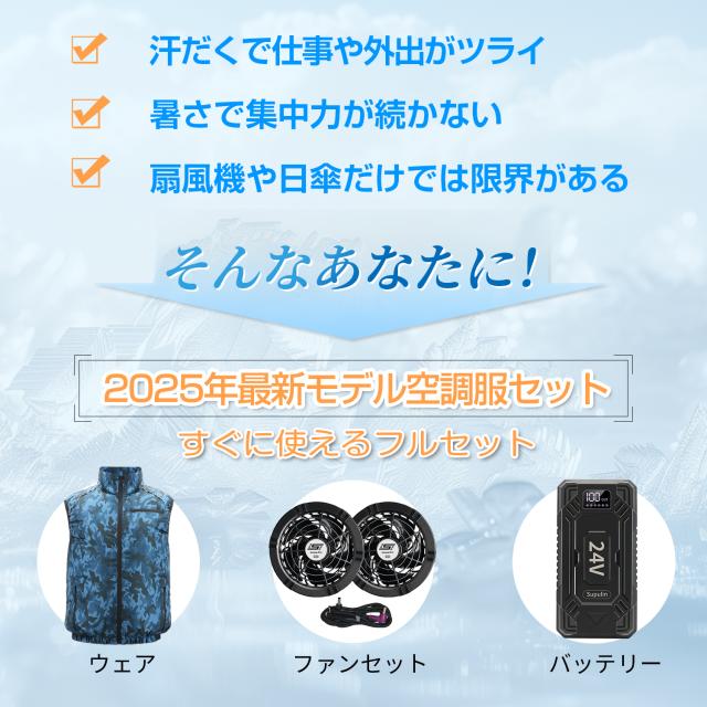 2025新型 空調服 空調作業服 フルセット バッテリー ファン セット 24V 19V 12V エアコン服 空調作業着 冷却服 大風量 ファン付き作業服 男女兼用 熱中症対策 熱中症予防 猛暑対策