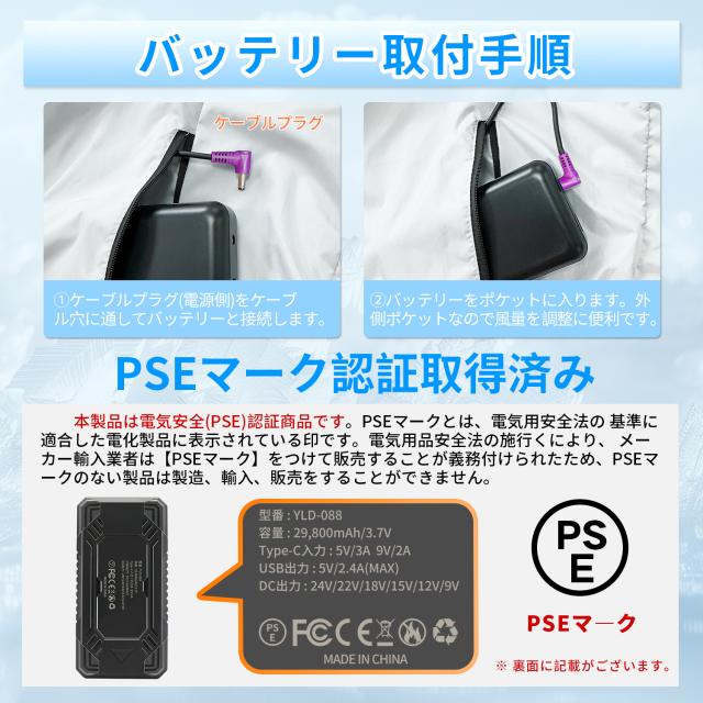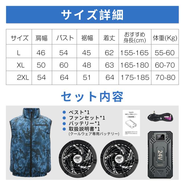 ●セット内容:空調ウェアベスト×1、ファン×2、専用バッテリー×1、充電ケーブル×1、取扱説明書兼保証書×1