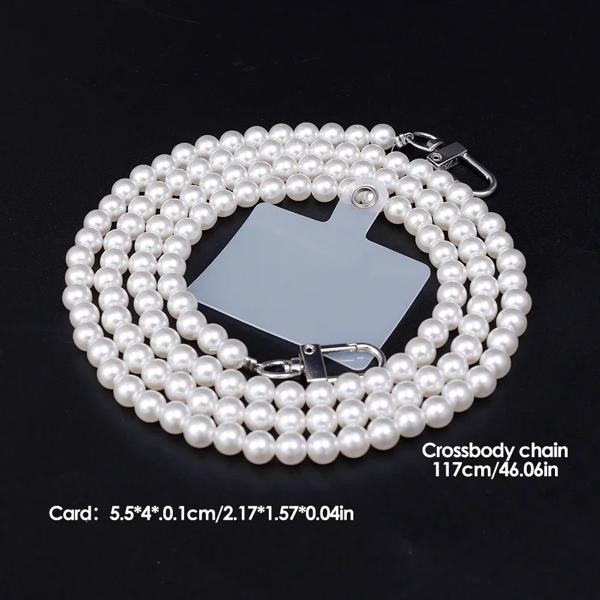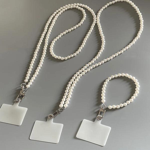 ポータブル携帯電話ストラップクロスボディネックレスチェーンパールストラップ紛失防止ロングパールブレスレット手首ショートスリングパッチ付き