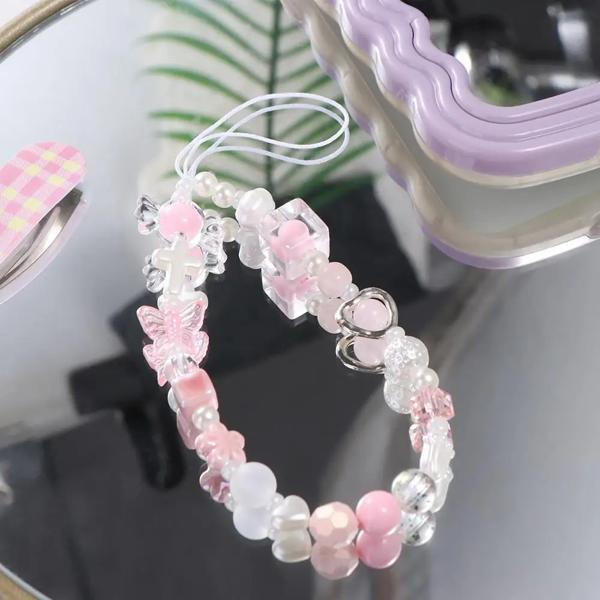 カワイイ-魅力的な携帯電話ストラップ ハートスター ピンクパール クマ バタフライスタイル チェーン y2k