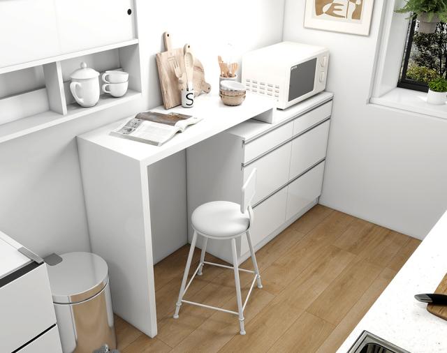キッチンカウンター 食器棚 レンジ台 キッチン収納 おしゃれ 台所 伸縮テーブル 作業台 カウンターテーブル レンジラック 電子レンジ台 大型レンジ台対応 大容量 キャスターなし 鏡面 ホワイト 高級感 【RDW-1203/PlusOneコの字/nail/約幅110〜209cm奥行44cm高さ94cm】 ☆