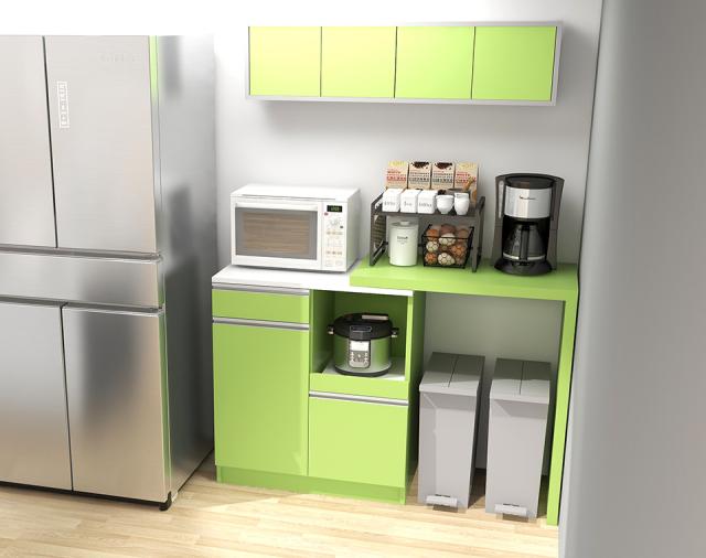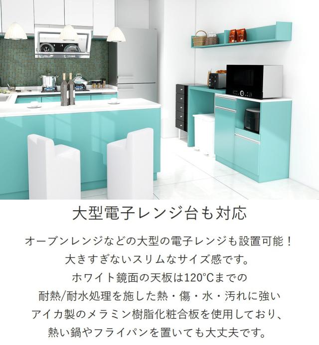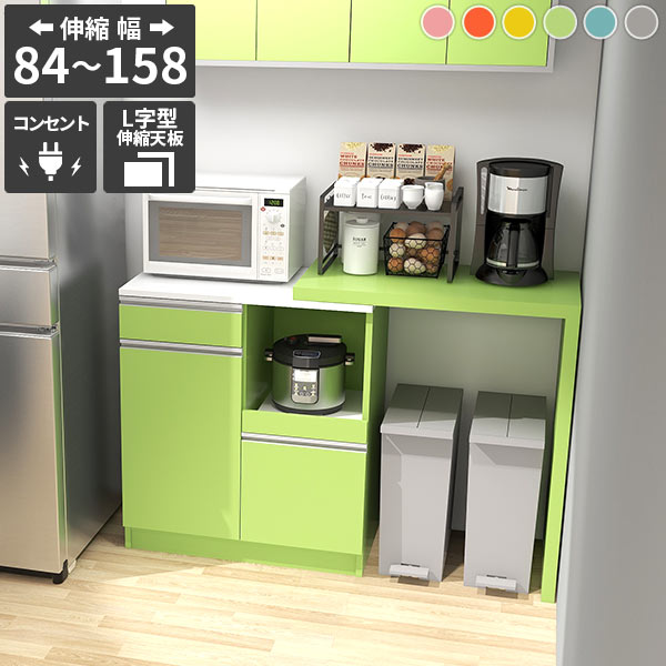 キッチンカウンター 食器棚 レンジ台 キッチン収納 おしゃれ 台所 伸縮テーブル 作業台 カウンターテーブル レンジラック 電子レンジ台 大型レンジ台対応 大容量 キャスターなし 日本製 ピンク グレー ブルー 【RDW-002/PlusOneL字/aino/約幅84〜158cm奥行44cm高さ94cm】 ☆