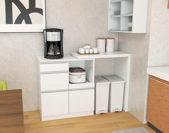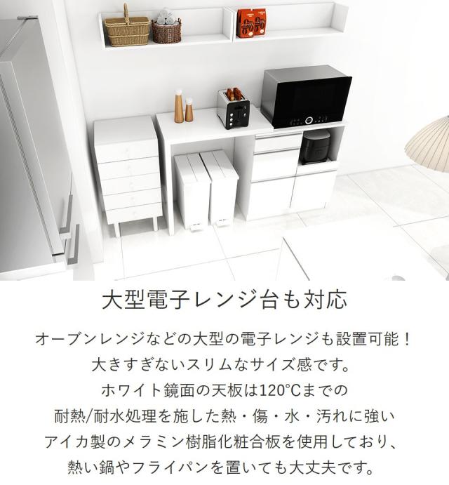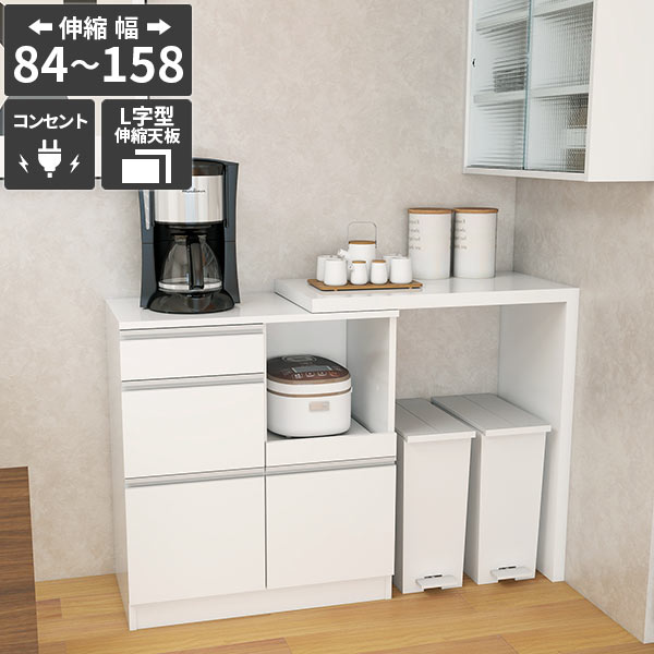 電子レンジ台 キッチンカウンター コンセント付き ゴミ箱収納 食器棚 大型電子レンジ対応 作業台 台所収納 レンジボード カウンターテーブル 炊飯器 引き出し スチームオーブンレンジ台 鏡面 ホワイト 高級感 【RDW-003/PlusOneL字/nail/約幅84〜158cm奥行44cm高さ94cm】 ☆