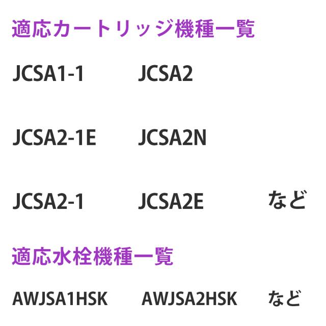 ■【純正品ではなく互換品です】スパウトインタイプ 浄水器(水栓一体型)交換用 浄水カートリッジ JCSA2、JCSA2E、JCSA1の互換性のある商品。 ■【適応カートリッジ機種一覧】JCSA1-1、JCSA2-1E、JCSA2-1、JCSA2、JCSA2N、JCSA2Eなど ■【適応水栓機種一覧】AWJSA1HSK、AWJSA2HSK など ■【16+5物質除去】遊離残留塩素、濁り、クロロホルム、ブロモジクロロメタン、ジブロモクロロメタン、ブロモホルム、テトラクロロエチレン、トリクロロエチレン、総トリハロメタン、CAT(農薬)、2-MIB(カビ臭)、溶解性鉛、シス-1,2-ジクロロエチレン及びトランス-1,2-ジクロロエチレン、ベンゼン、ジェオスミン、フェノール類、鉄(溶解性)、鉄(微粒子状)、アルミニウム(中性)、溶解性マンガン、PFOS及びPFOA ■【交換の目安】約4ヶ月(1日10L使用した場合)使用水量・水質・水圧によって大幅に短くなることがあります。 材料の種類: ABS樹脂 ろ材の種類: 中空糸膜、イオン交換体、活性炭、不織布 ろ過流量: 2.0L/分(動水圧0.1MPa時) 使用可能な最小動水圧: 0.07MPa 適応カートリッジ機種一覧: JCSA1-1、JCSA2-1E、JCSA2-1、JCSA2、JCSA2N、JCSA2E など ※毎日の使用開始時は、浄水を15秒以上流してからご使用ください。また、2日以上ご使用にならなかったときは、浄水を1分間以上流してからご使用ください。 ※購入検討商品に関してご不明な点やご不安をお持ちのお客様は、ご購入前にお問い合わせください。 |
