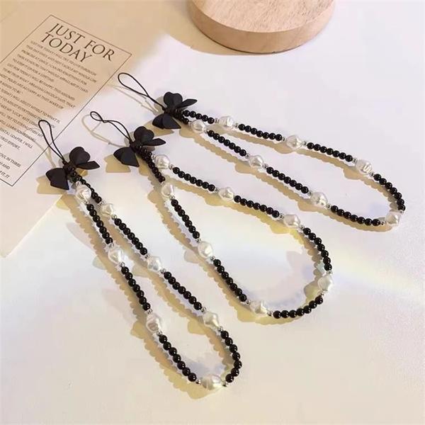 レトロちょう結びパール電話チャームストラップフラワービーズペンダント韓国ブレスレット iPhone サムスンアクセサリーぶら下げロープ女の子のための