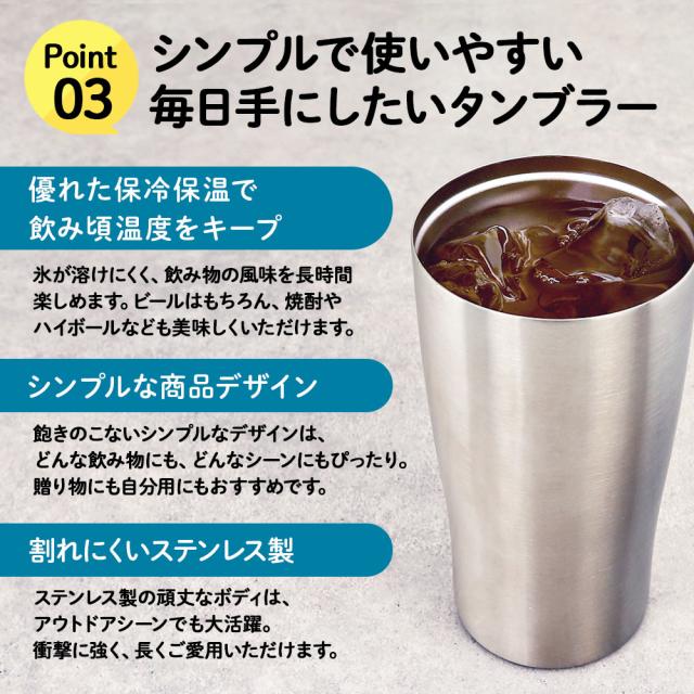 | 商品詳細 | 真空二重構造のシンプルなタンブラー、450mlで使いやすい、お名前入りでギフトにもおすすめ。 |