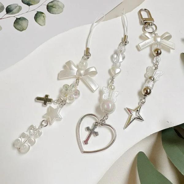 キャンディーカラーパールちょう結び電話チェーンスウィートベアハートペンダントイヤホンケース紛失防止ストラップバッグ装飾