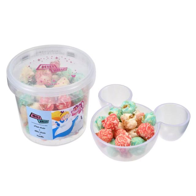 アリスとチェシャ猫をデザインしたクリアバーレル入り。グルメポップコーン専門店「HillValley(ヒルバレー)」のポップコーンが登場。『ふしぎの国のアリス』の物語のようなカラフルで可愛らしい雰囲気を演出する3種のフレーバー、ピンクソーダ、ブルーソーダ、バニラのミックスタイプです。サイズ 約 高さ9.8×直径11(cm)重さ 約 125(g)対象: 3才以上賞味期限 約2か月