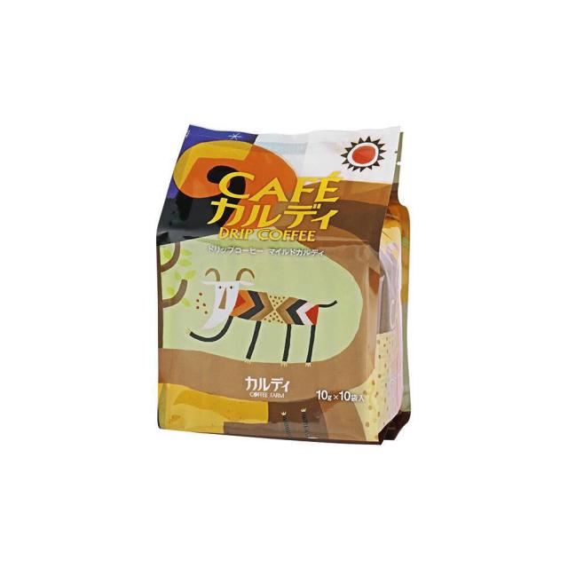 カルディコーヒーファームで最も人気の高いオリジナルブレンドコーヒー「マイルドカルディ」のドリップタイプです。厳選したコーヒー豆を使用しローストを中煎りに仕上げることで、ブラジルのやさしい甘味を引き出した香り豊かな味わいに仕上げています。ご自宅やお勤め先、アウトドアや旅行先などでも手軽に本格的なコーヒーの香りと味わいをお楽しみください。1袋ずつの個包装なので気軽なギフトにもどうぞ。内容量:100g(10g×10袋)