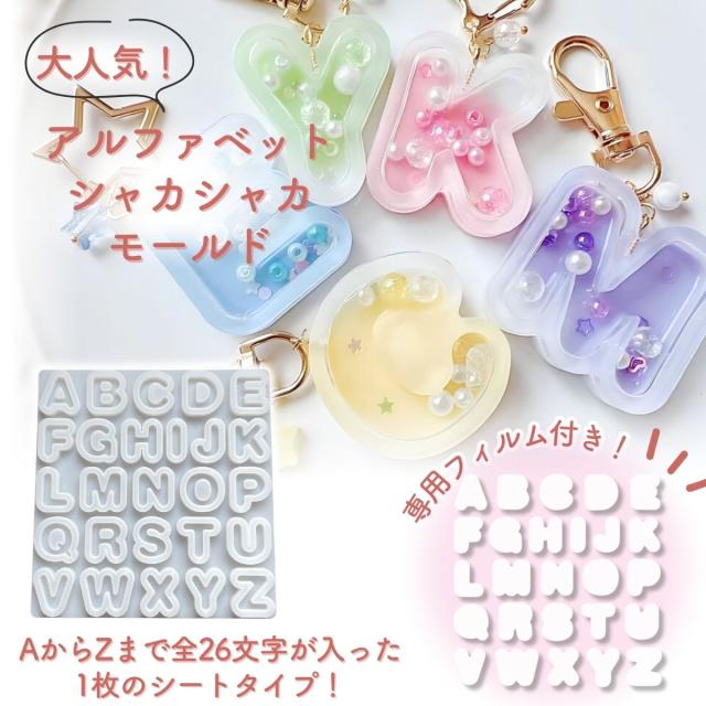 【フィルム付】レジン モールド シリコンモールド アルファベット シャカシャカ イニシャル シェイカーモールド レジン モールド ハンドメイド クラフト用 レジン 型 レジンモールド