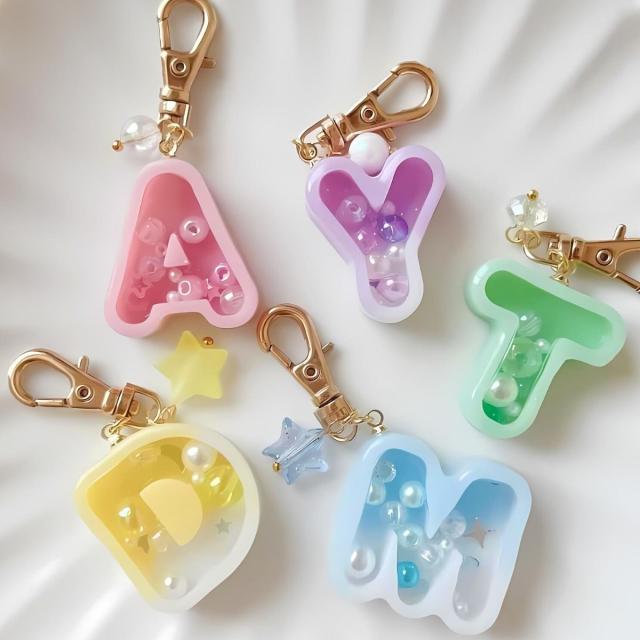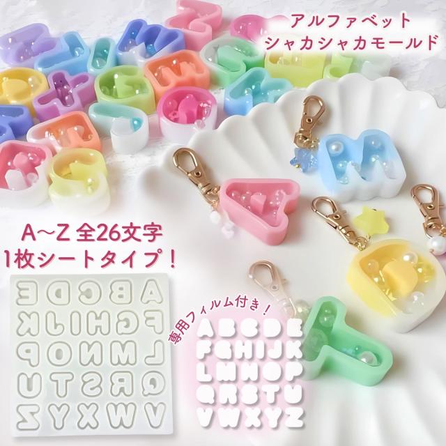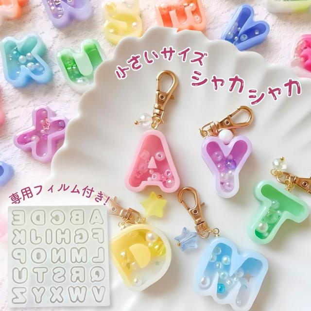 【専用フィルム付】 レジン シリコンモールド アルファベット レジン型 モールド シャカシャカ イニシャル キーホルダー シェイカーモールド レジン UVレジン LEDレジン エポキシ樹脂