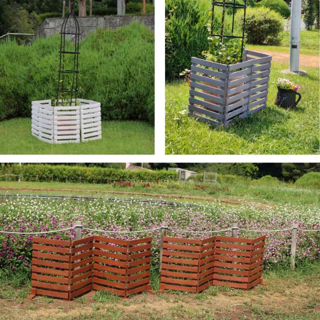 ジグザグ、コの字型、四角形など用途に合わせて曲げて設置できるので、理想の庭づくりが実現します。プランターカバーとしてや、繊細な植物の保護、景観を損なうものの目隠しに。また、ペットの飛び出し防止に使ったり、殺風景なベランダをおしゃれに変身させたりと、アイデア次第で様々な場所で活躍します。