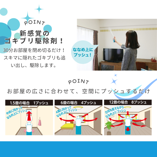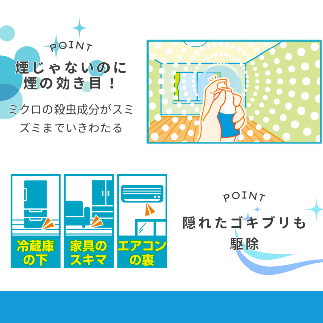 ●部屋に潜むゴキブリなどの害虫を簡便に駆除したいというニーズに対応。