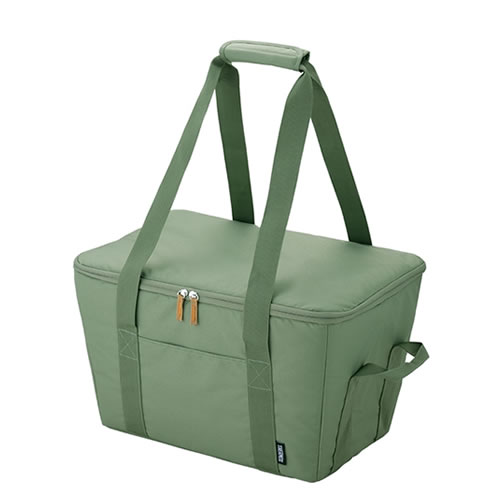 フラップがついているのでレジカゴにぴったりセット可能。断熱構造なので冷たいものをしっかりと冷やしたまま持ち運べます。