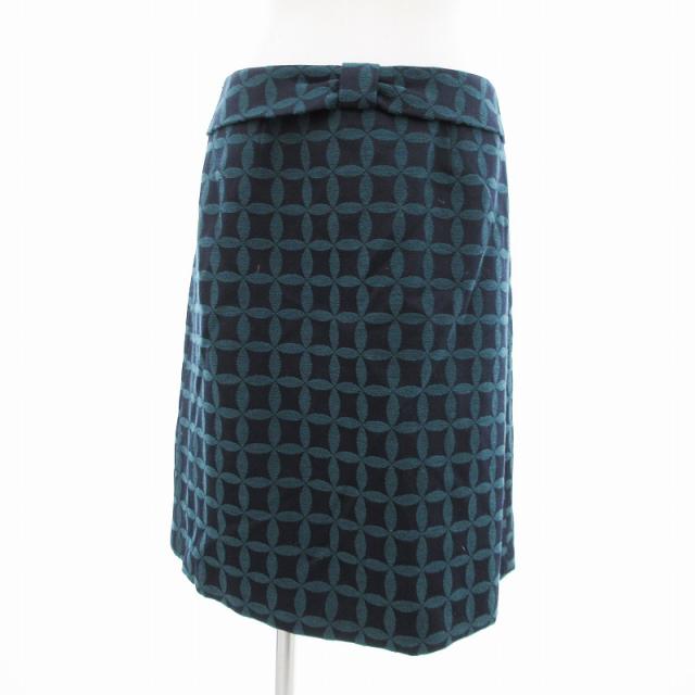 【中古】テチチ Te chichi スカート ひざ丈 総柄 ジャガード タック 紺 緑 /JS レディース