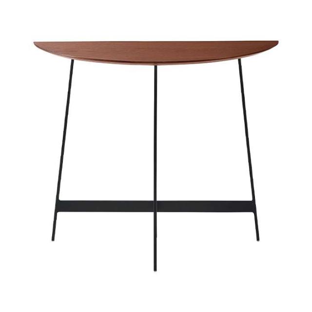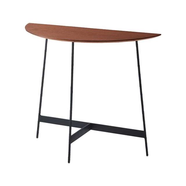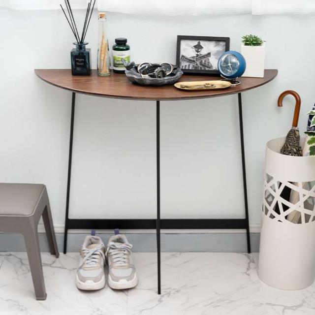 シンプルかつスタイリッシュなデザインのコンソール 「美しい木目×アイアンレッグ」異素材の組み合わせが上品な印象を与えるコンソール。美しいシンメトリーのフォルムで、天板が半円なので様々な場面で活躍します。シンプルながらお部屋にアクセントを加え、空間をグレードアップしてくれます。