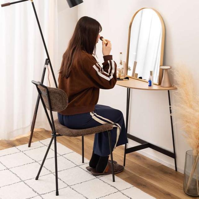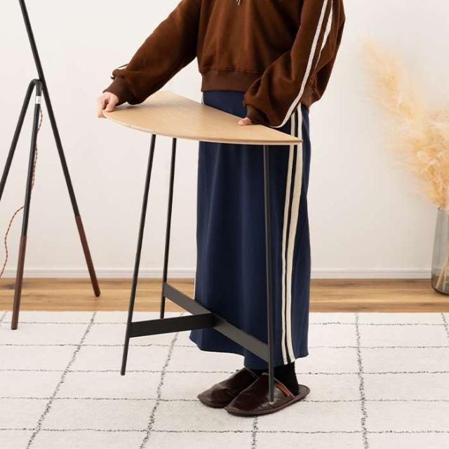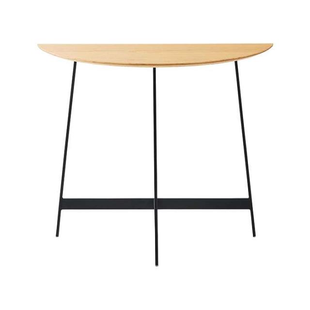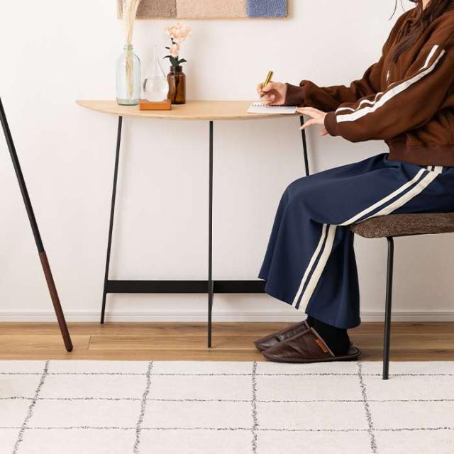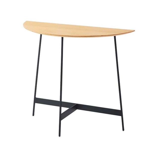 シンプルかつスタイリッシュなデザインのコンソール 「美しい木目×アイアンレッグ」異素材の組み合わせが上品な印象を与えるコンソール。美しいシンメトリーのフォルムで、天板が半円なので様々な場面で活躍します。シンプルながらお部屋にアクセントを加え、空間をグレードアップしてくれます。