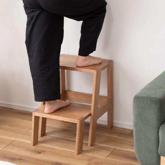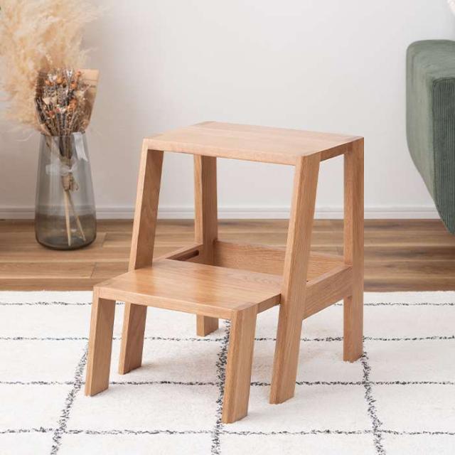 空間に合わせやすいオーク天然木のステップ台ぬくもりを感じるナチュラルなステップ台が誕生しました。オーク天然木を使用しているため、様々な空間でよく馴染みサポートします。ステップ台としてはもちろん、スツールやディスプレイ台としても活躍します。●1段目が収納可能●スツールとして●サイドテーブルとして●オーク天然木を使用