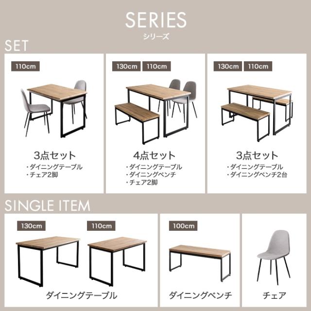 ○【ダイニングテーブル(幅110cm)+ダイニングベンチ+チェア2脚(4点セット)】の販売ページはこちら。