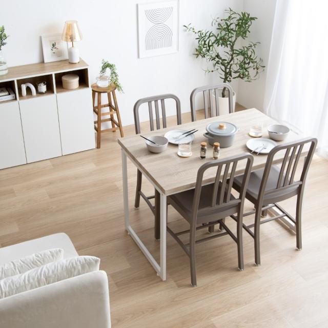 お部屋に置くだけで、まるでカフェにいるような落ち着いた空間を演出します。また、コンパクトなサイズで、省スペースに置くことが可能なので、スペースに余裕のないお部屋にもおすすめです。さらに、リアルな木目の天板にはPVC加工を、アクセントとなるロの字型脚には粉体塗装を施しているのでお手入れ簡単。