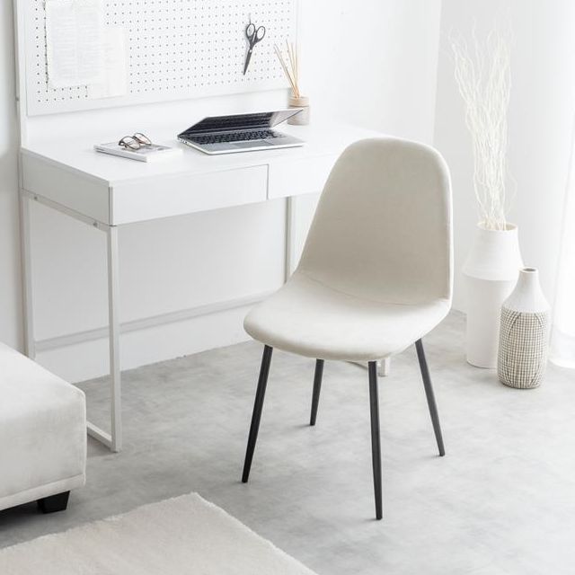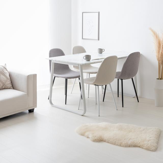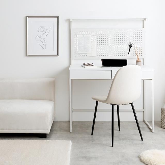 シェルのように曲面のある座面が身体にフィットし、長時間座っても疲れにくい設計です。また、張地には優しい手触りのファブリック生地を採用することで、オールシーズン快適に使用可能。