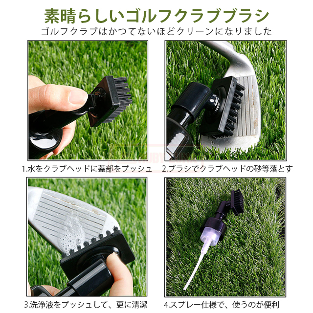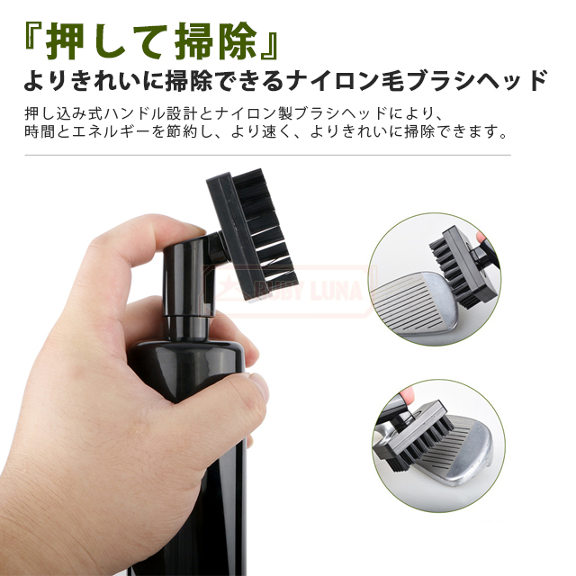 | 【楽に清潔】 | ◆瓶に水または溶液を入れ、押してスプレーし、ブラシヘッドでこすると、クラブの汚れを効果的に取り除くことができます。より短い時間でクラブを掃除することができ、掃除に最適なツールです。 |