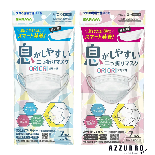 サラヤ 息がしやすい 二つ折りマスク ORIORI 7枚入【ドラッグストア】【追跡可能メール便対応4個まで】【宅急便コンパクト対応】 不織布マスク 白 使い捨て 使い捨てマスク ますく ウイルス 飛沫対策 saraya