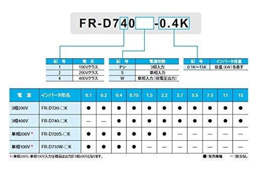 三菱電機 簡単小型インバータ FR-D720-7.5K