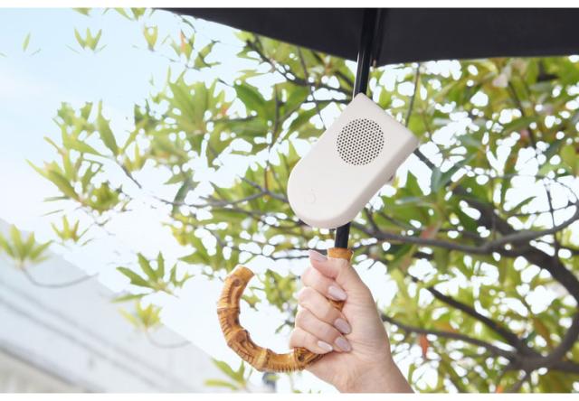 日傘やベビーカーに装着できるクリップ付きのファン。軽量で紫外線対策をしながら涼しさを感じられる画期的なアイテムです。傘への装着はもちろん、手持ちや卓上でもお使いいただけます。付属のストラップで首から下げれば、風をハンズフリーで受けることも可能。クリップは取り外しができるので、多様なシーンに合わせてお好みの使い方を選んでいただけます。ボタンひとつで3段階の風量調節ができます。また、ランプ表示でバッテリー残量を簡単に確認できるのも嬉しいポイント。ジメッとした暑さが気になる雨の日の使用もオススメです。