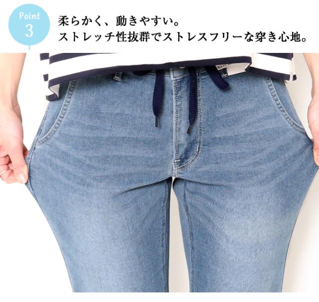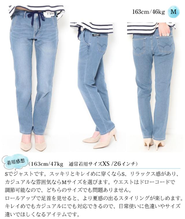 EDWIN エドウィン ジャージーズ スリムストレート 涼しいデニム 夏用 レディース パンツ 夏 ボトムス 伸びる ストレッチ 楽チン ワンウォッシュ インディゴブルー ライトブルーグレー 楽 スッキリ 細見え 軽い 薄め リラックス感 イージーパンツ ドローコード ひも付き カジュアル 淡色ブルー ライトブルー アメカジ ブランド シンプル きれいめ 大人 カジュアル ラフスタイル ラク 楽 大人 美脚効果 脚長効果 カジュアル 女性 定番 マニッシュ