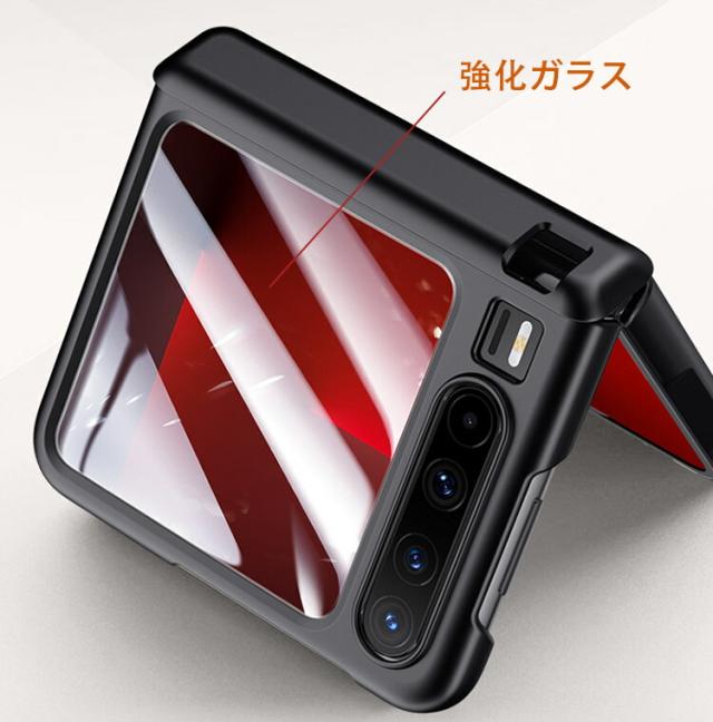 HUAWEI Pura X ケース カバー 折りたたみ型 Qi充電 ワイヤレス充電 対応 TPU+プラスチック ハードケース サブディスプレイ液晶保護フィルム 強化ガラス付き シンプル ファーウェイ プーラ X おすすめ おしゃれ