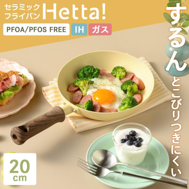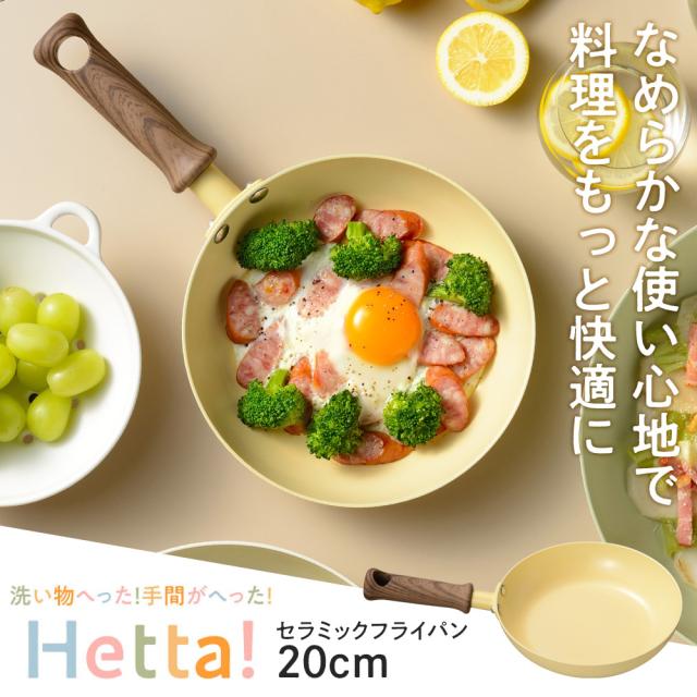Hetta! IH対応 セラミックフライパン 20cm イエロー RB-3521 | IH ガス対応 こびりつかない ガス火対応 セラミック加工 かわいい おしゃれ 洗いやすい 黄色 ニュアンスカラー