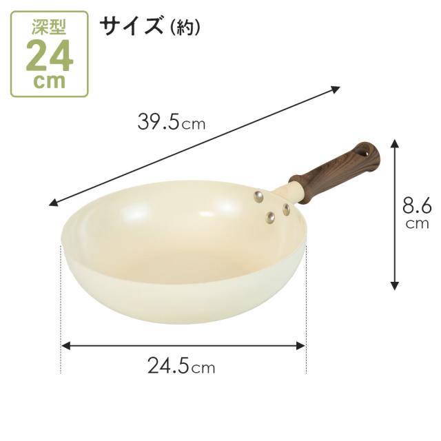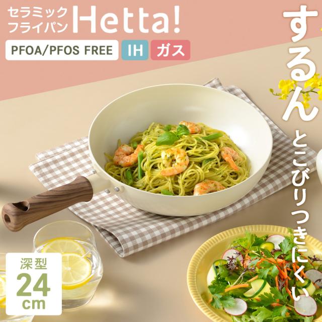 Hetta! IH対応 セラミックフライパン 深型 24cm ホワイト RB-3524 | IH ガス対応 こびりつかない ガス火対応 セラミック加工 かわいい おしゃれ ディープパン 洗いやすい 白 ニュアンスカラー