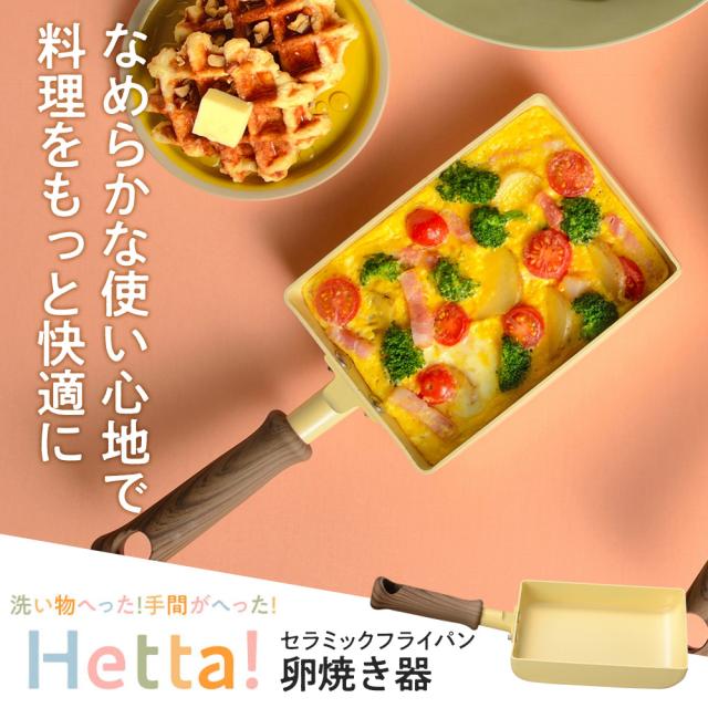 Hetta! IH対応 セラミック卵焼き器 13×18cm イエロー RB-3526 | IH ガス対応 こびりつかない ガス火対応 セラミック加工 かわいい おしゃれ 卵焼き たまご焼き 洗いやすい エッグパン 黄色 ニュアンスカラー